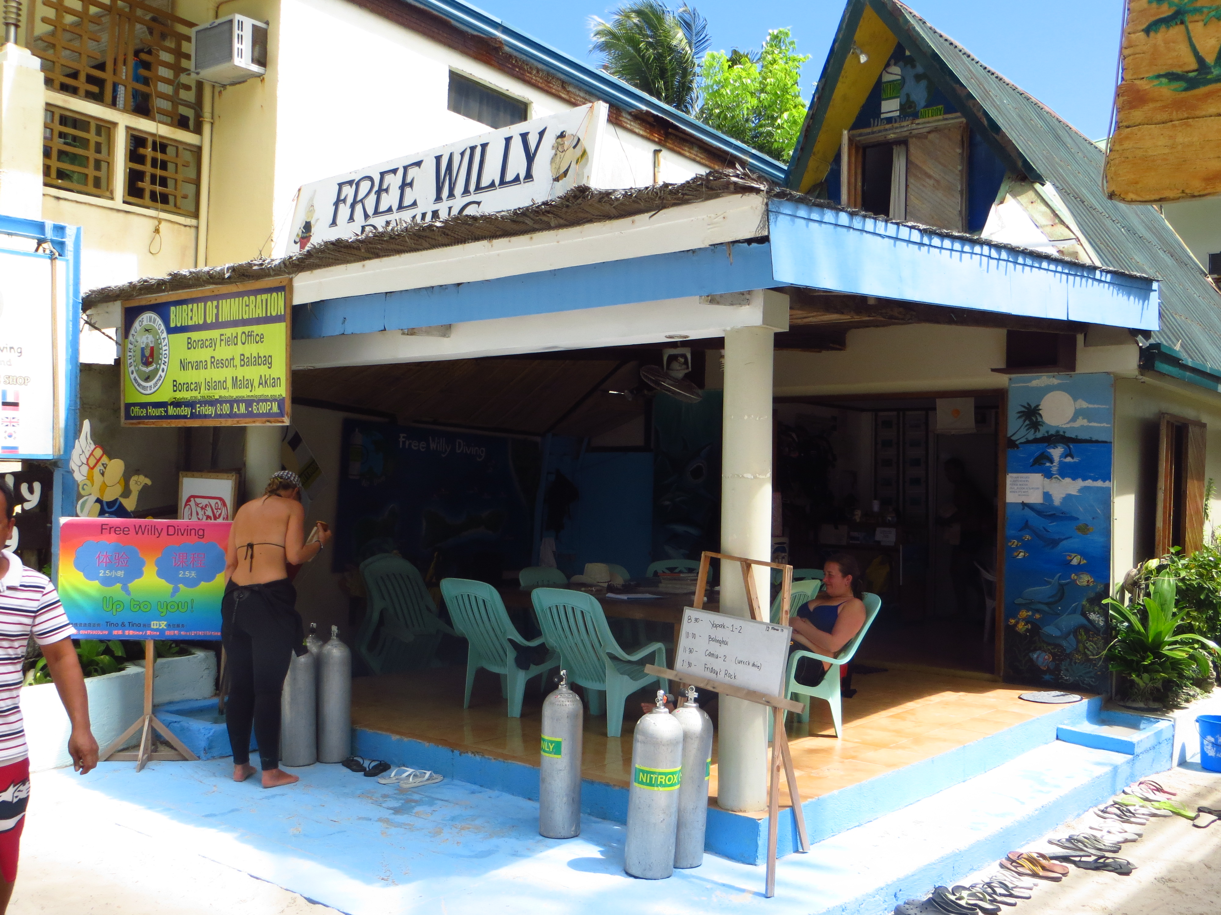 Scuba Junkien toimisto Sempornassa. Siisti ja hiano.