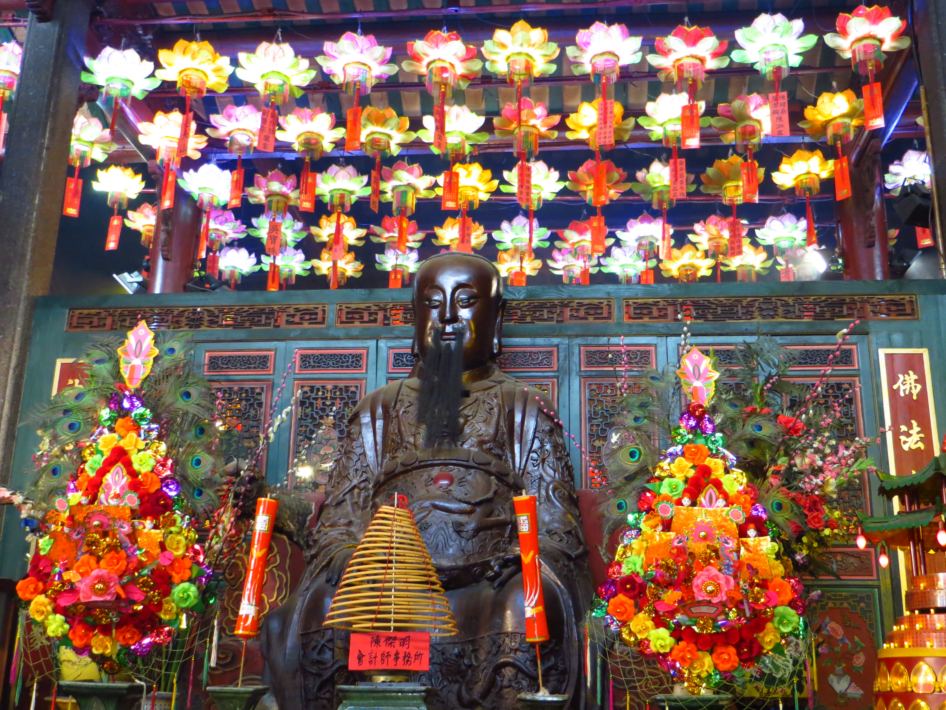 Takaisin Star Ferrylle. Leppoisan lauttamatkan jälkeen hyppäsimme ratikkaan ja matkustimme vanhasta muistista sinne, missä oletimme temppelin olevan. Muistimme hyvin, pari suunnan kysymistä ja temppeli löytyi. Se on melko pieni, mutta jotenkin lumoava. Pyörimme temppelissä ja tapasimme erään uusiseelantailaisen miehen, joka peredytti meidät rukouksen saloihin. Tuolla sytytetään suitsukkeita vaurauden jumalille, tuolta voi pyytää hyvää terveyttä, tuolta pitkää ikää. Kätevää.